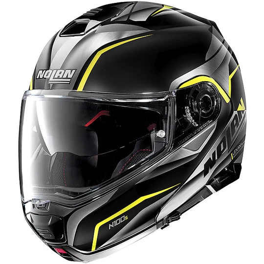Casque modulaire avec mentonnière rabattable et double homologation P / J, avec pare-soleil intégré, disposition pour lentille Pinlock, intérieurs amovibles et fermeture micrométrique; parfait à la fois en ville et sur la route
