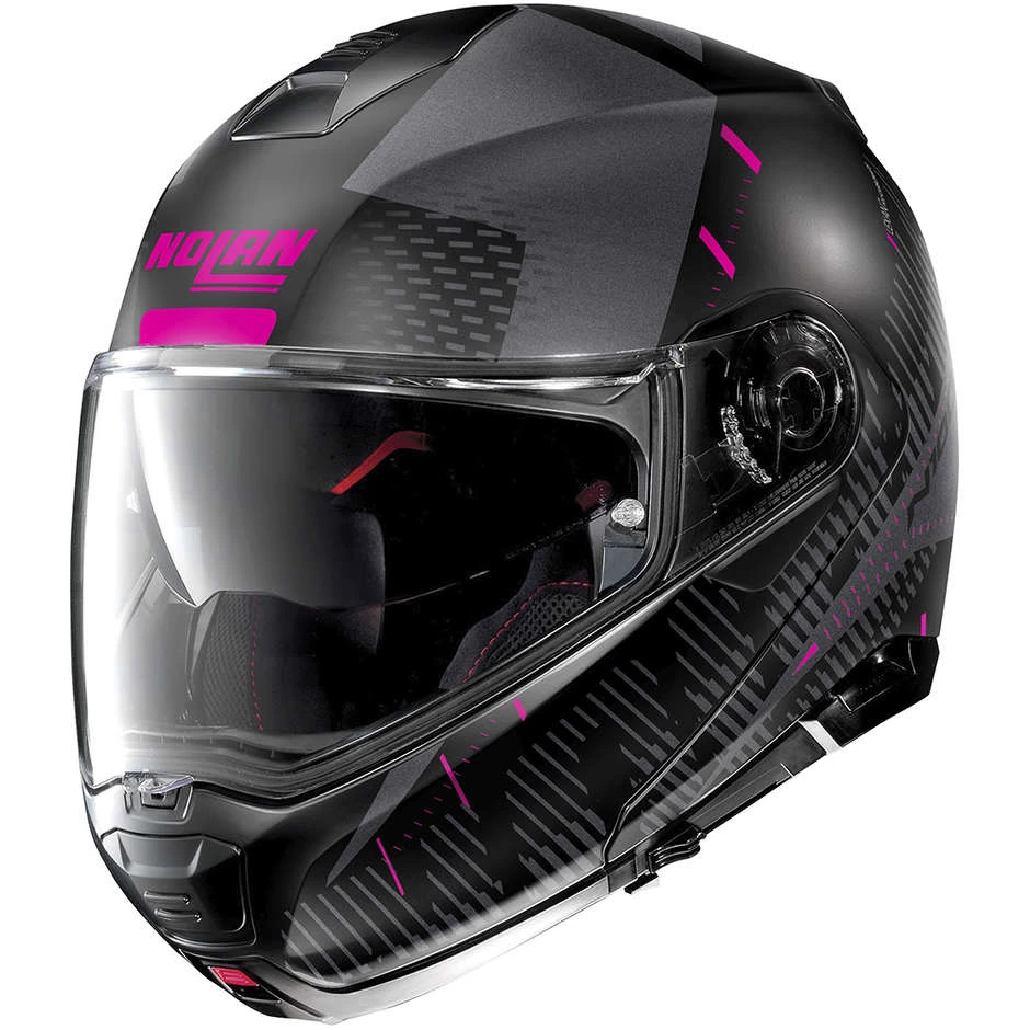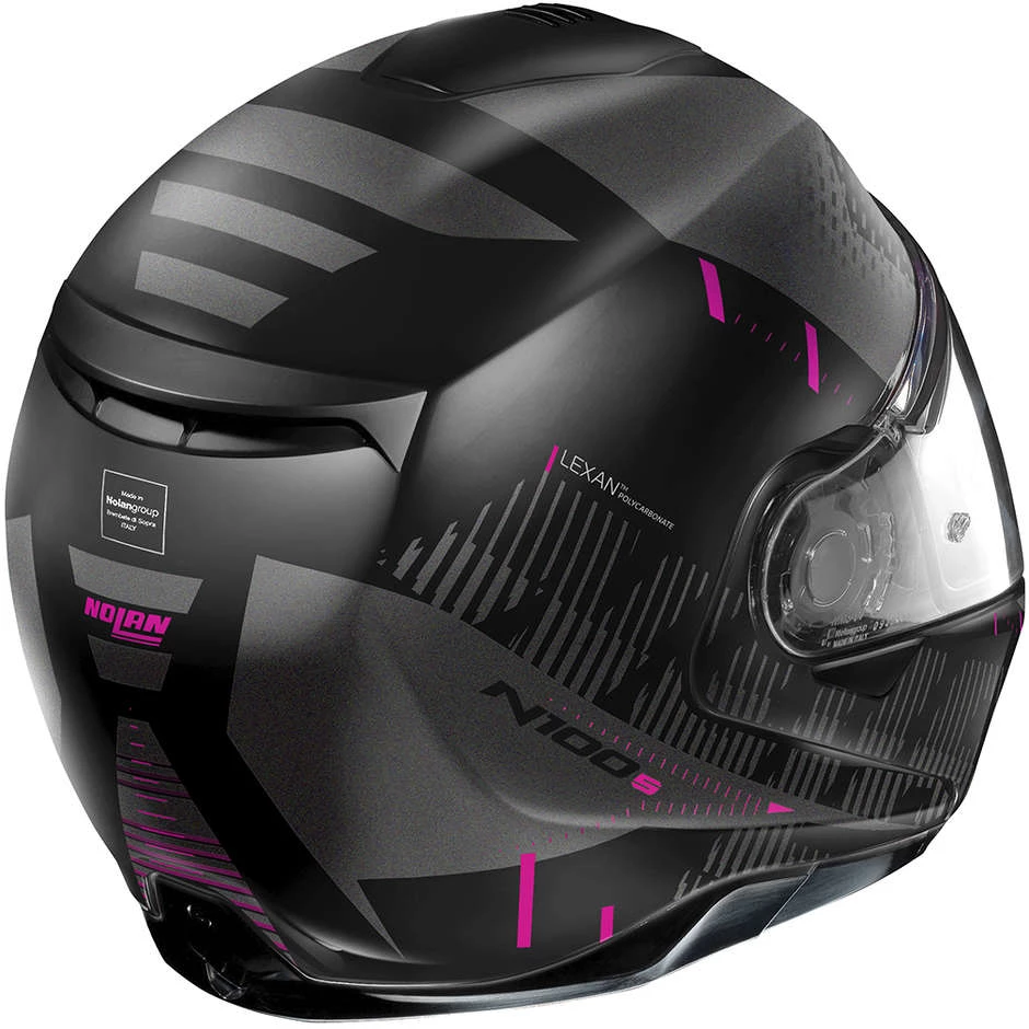 C’est le haut de gamme de Nolan. Petit volume, double homologation P / J, visière ultra-large, Ă©cran solaire VPS, système de ventilation supĂ©rieure AirBooster Technology, mouvement de rotation de la mentonnière avec trajectoire elliptique, système exclusif d’ouverture de la mentonnière avec mĂ©canisme Ă double action, système de rĂ©tention avec rĂ©glage micromĂ©trique avec double levier Microlock 2 , le rembourrage de confort interne innovant Clima Comfort et la prĂ©disposition pour le système de communication N-Com font du N100-5 un produit très populaire, mĂŞme parmi les touristes Ă moto les plus exigeants.