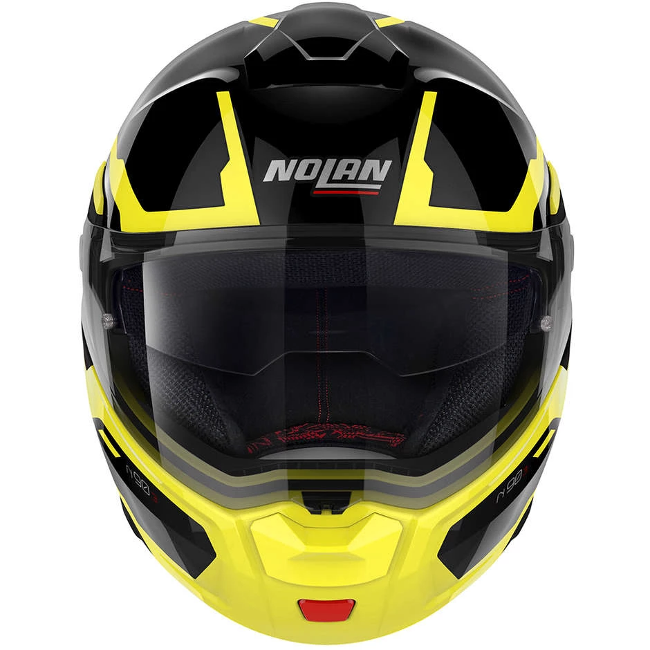 C’est le nouveau flip-up d’entrĂ©e de gamme de Nolan. Il se caractĂ©rise par une conception solide et compacte et un bon Ă©quipement technique. Double homologation P / J, visière ultra-large, Ă©cran solaire VPS (rĂ©glable dans diffĂ©rentes positions), système de ventilation supĂ©rieure AirBooster Technology, système exclusif d’ouverture de la mentonnière avec mĂ©canisme Ă double action, système de rĂ©tention avec rĂ©glage micromĂ©trique avec double levier Microlock2 et prĂ©disposition pour le système de communication N-Com font du N90-3 une ouverture intĂ©ressante dans le domaine des scooters et des motos.